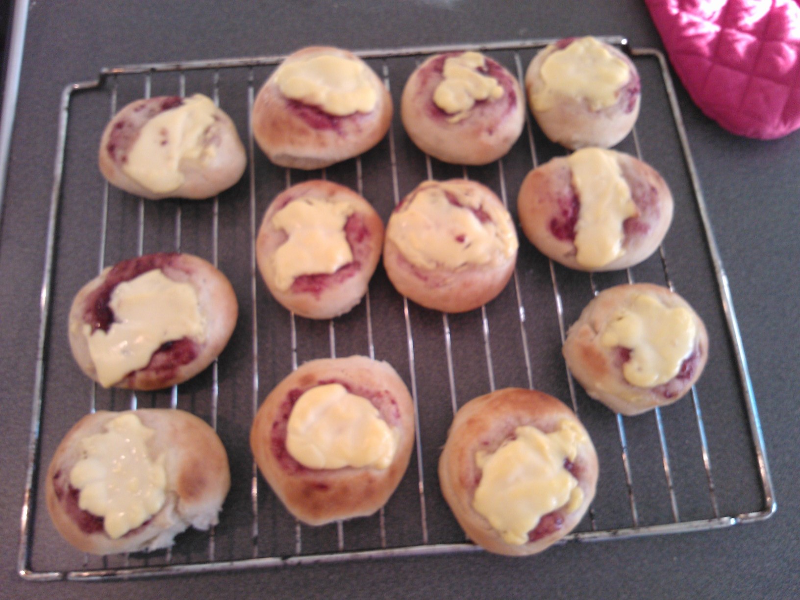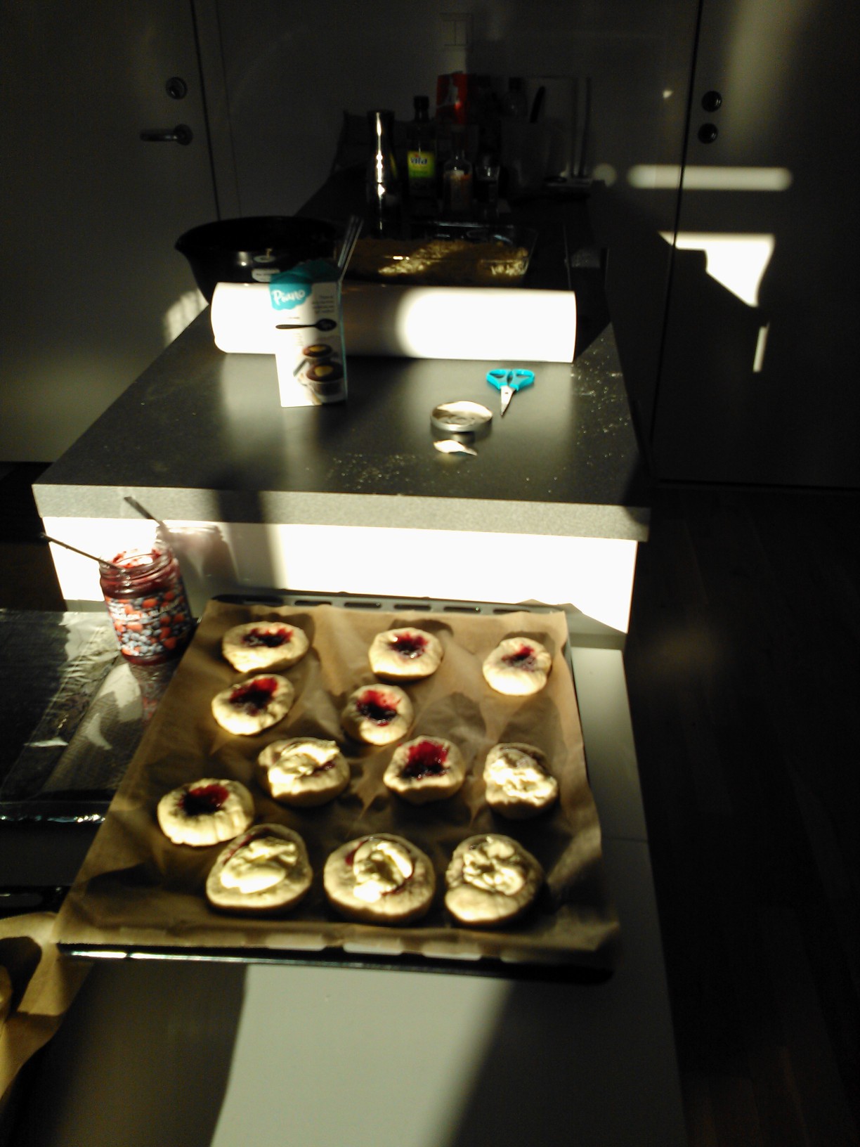 I’m making lasagna and baking buns. With vanilla cream and blueberry and raspberry jam, in the buns not the lasagna. As I’m not very good at baking (it usually tastes really good, but looks horrible) I’m quite proud that I at least tried. Also it’s the first time I’ve tried to bake in my new oven and had no idea how this would turn out. As I’m told ictures are important on a blogI’m adding some to show you how I bake. I should warn you I’m not a glamourous baker…