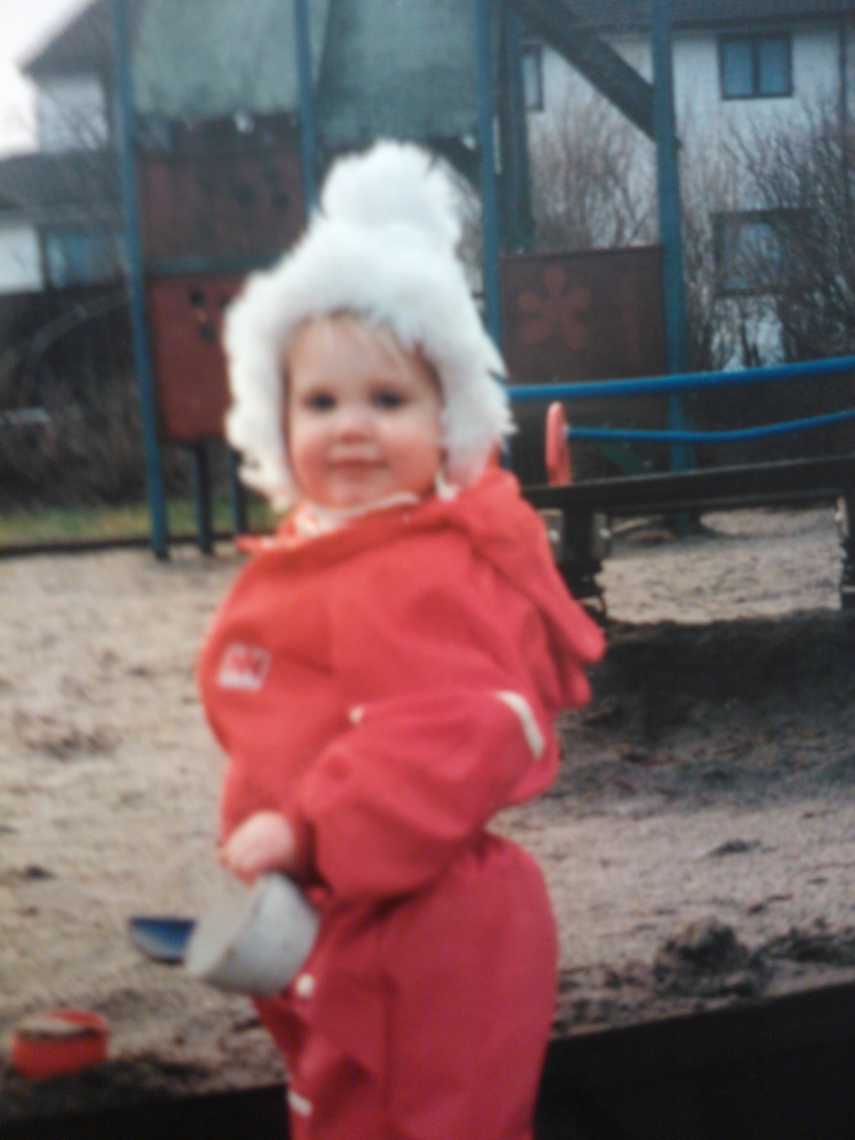 Someone is preparing a quiz for work where we got asked to send in a picture of ourselves from before we were five. So I figured I could just as well post it here as well just in case some of you were wondering what I looked like as a child. So under is me on the playground at 1,5 years. Those where the days 🙂