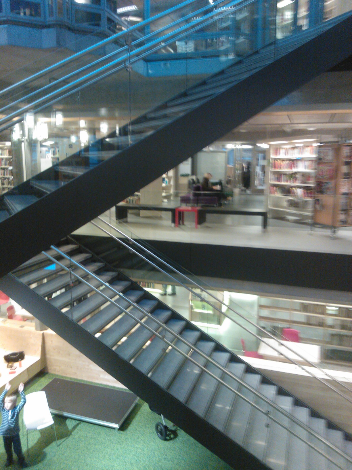 I found the new interior very inviting. And I recently read in the newspaper that the number of visitors in the library had gone up. I love the library and as a book lover this place has always been one of my favorite places in town. I’m glad that a lot of other people finds their way here as well. Today it was very crowded so I decided to just have a look around and see how the new library looked like and save the books for later. The sad thing is it seems this is a trend because while the numbers of visitors increase the numbers of books being borrowed decreases. But the library has at least managed to get people to come here. With arrangements like lectures, reading, debates, small concerts and so on. Lets hope that is a trend that continues.