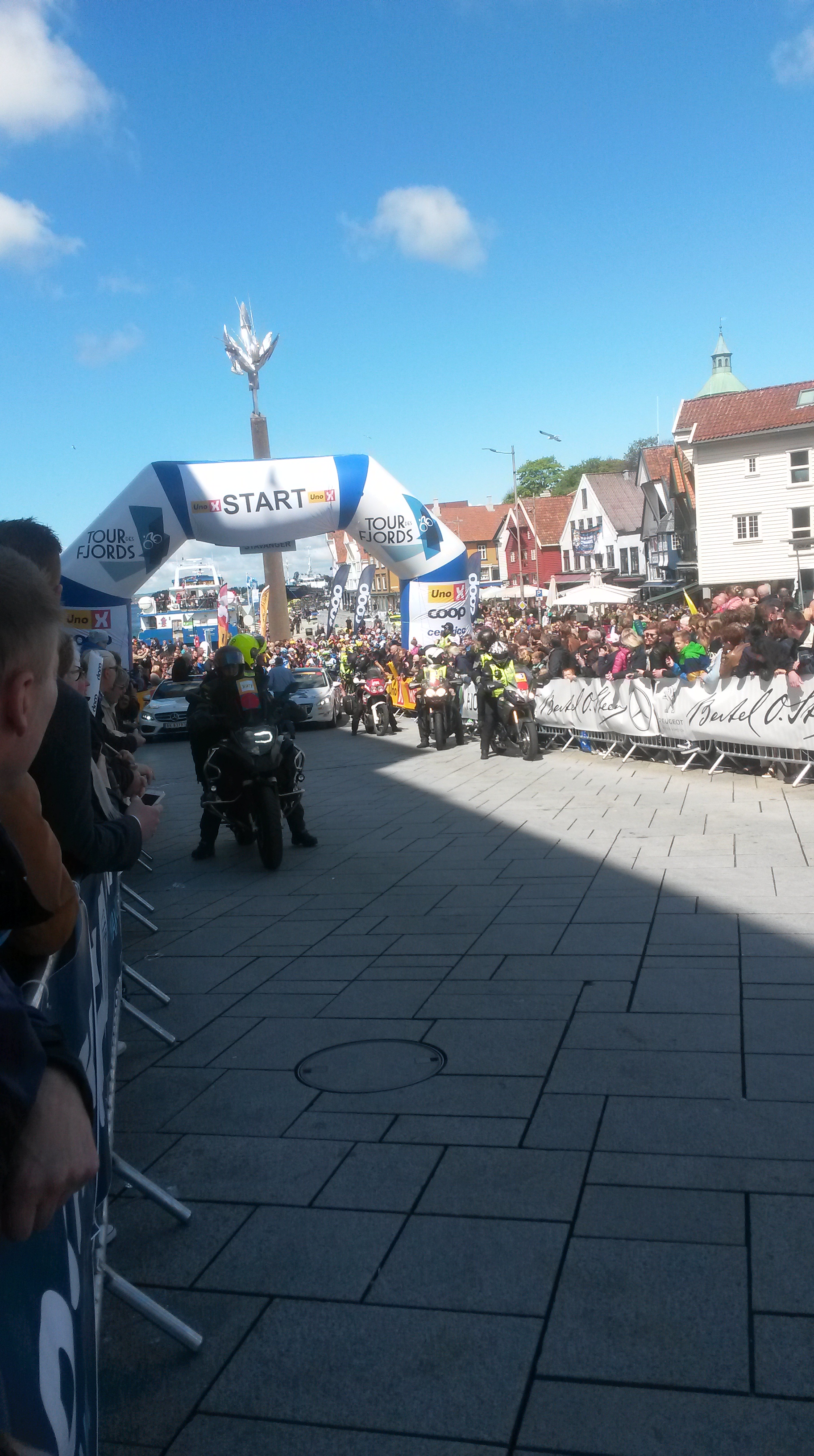 Tour des Fjords is a cycling event that goes over stages. It’s set in the region where I live and they cycle past the fjords and mountains close by. There are also stages that begins that begin and end in my city Stavanger and the neighbouring city Sandnes Most people here root for the local cyclist Alexander Kristoff who won last year. Plenty of people showed up to cheer for the cyclist as they went past and a lot of people were watching on the big screen put up in the town square and on TV. Showing of our lovely nature on TV like that is really good for tourism, so we were lucky the sun decided to pay us a visit.