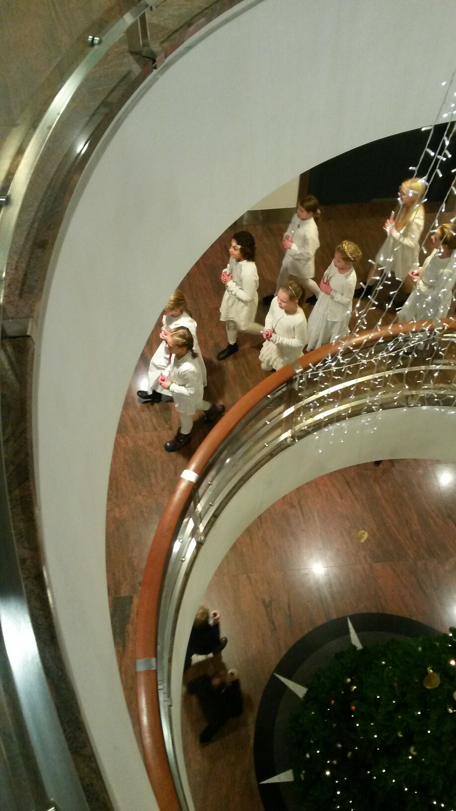 I was at a birthday party for a one year old and got served safron buns called “lussekatt” in Norwegian. And when I went to do some shopping I met a Saint  Lucy parade in the shopping centre.