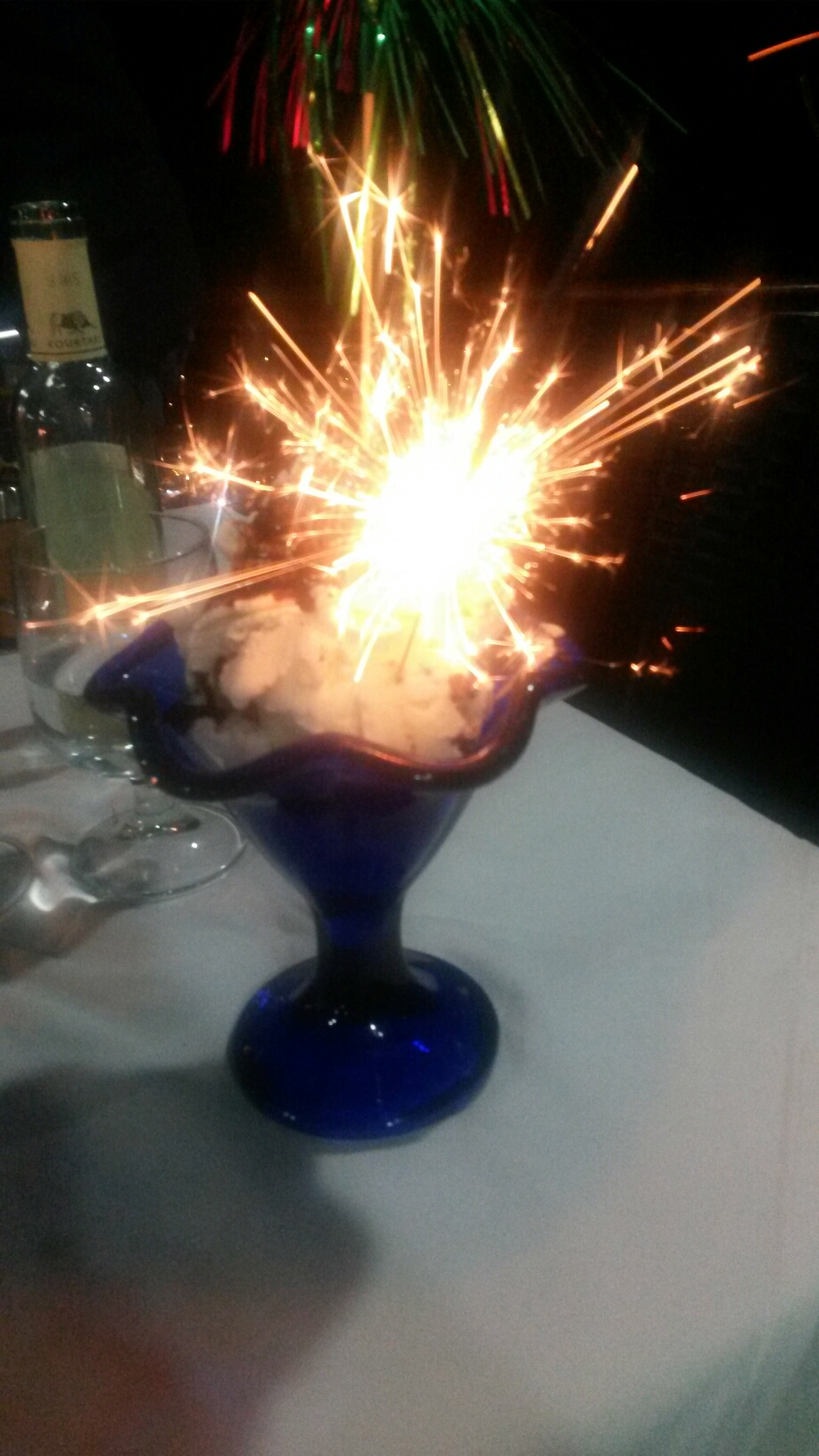 1. The food is always the best part. I loved finding ice cream with liqueur on it for dessert. Sparklers scare me a little as I have been burned by them too. When is your next holiday?