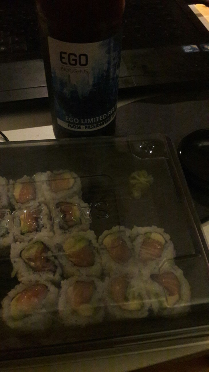 So I started off leaving work a little earlier than I had anticipated. And I went to get some lovely sushi and treated myself to a lovely craft beer with passionfruit. I did a few things that needed doing and the just relaxed on the couch before meeting up with some friends at the pub for a couple.