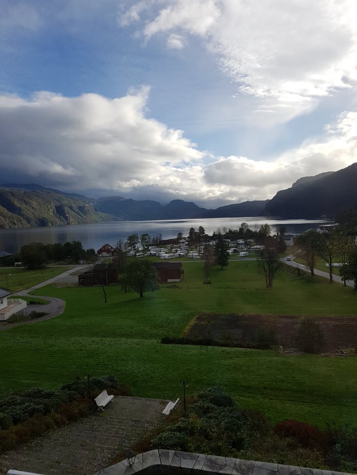 I was a maid of honour at my friends wedding last weekend. The wedding took place at an old hotell in a small place called Sauda. The hotell is located in beautiful suroundings and we were lucky enough to get a room facing the fjord.