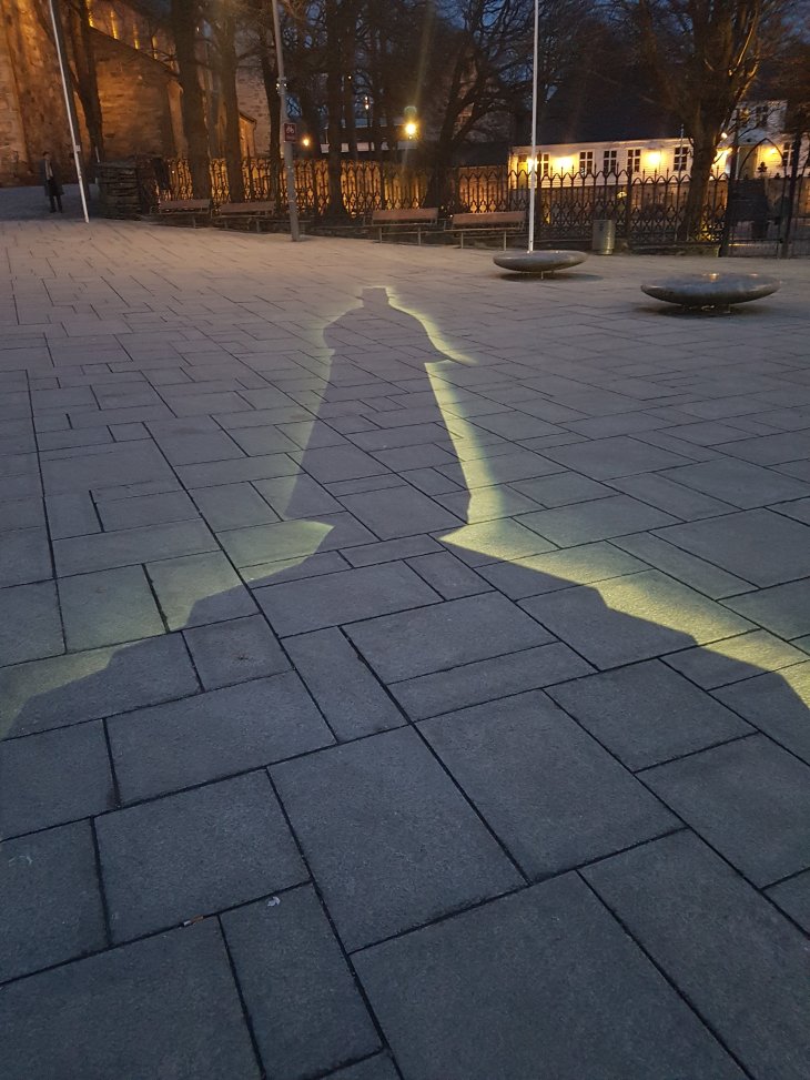 Lights on statue of Alexander Kielland makes a Nice effect