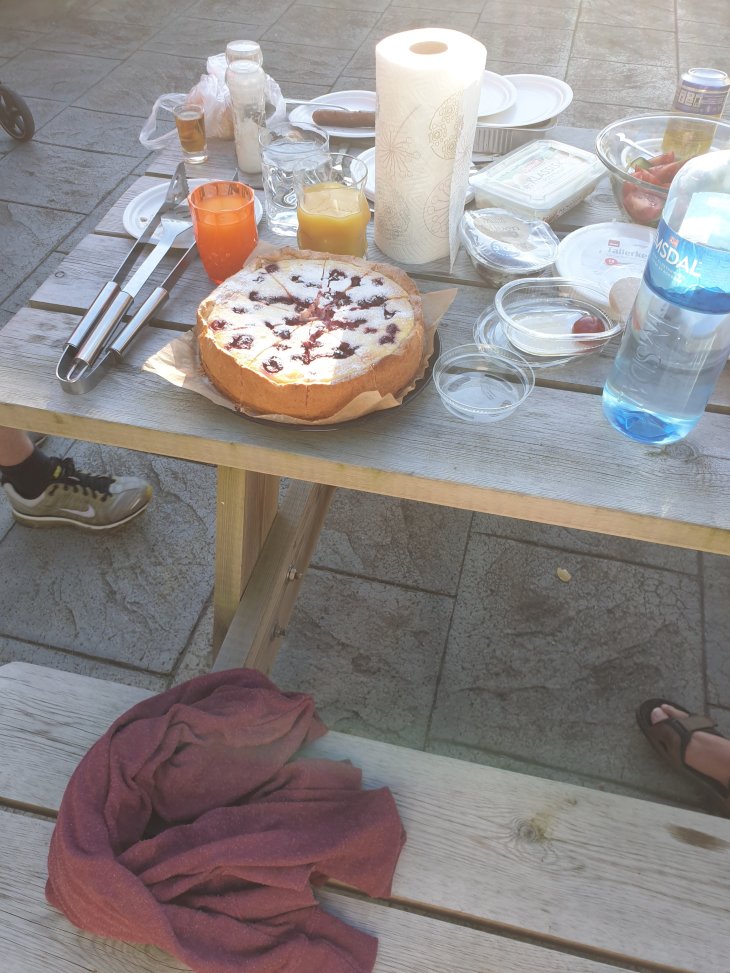 Sunday also showed up with lovely sunshine and time for another bbq to meet even more good friends. After a big breakfast, I did some baking so we had some home made buns to bring to the bbq. This time there was also a lot of very tasty food, great company and good weather. We left very content and extremely full.