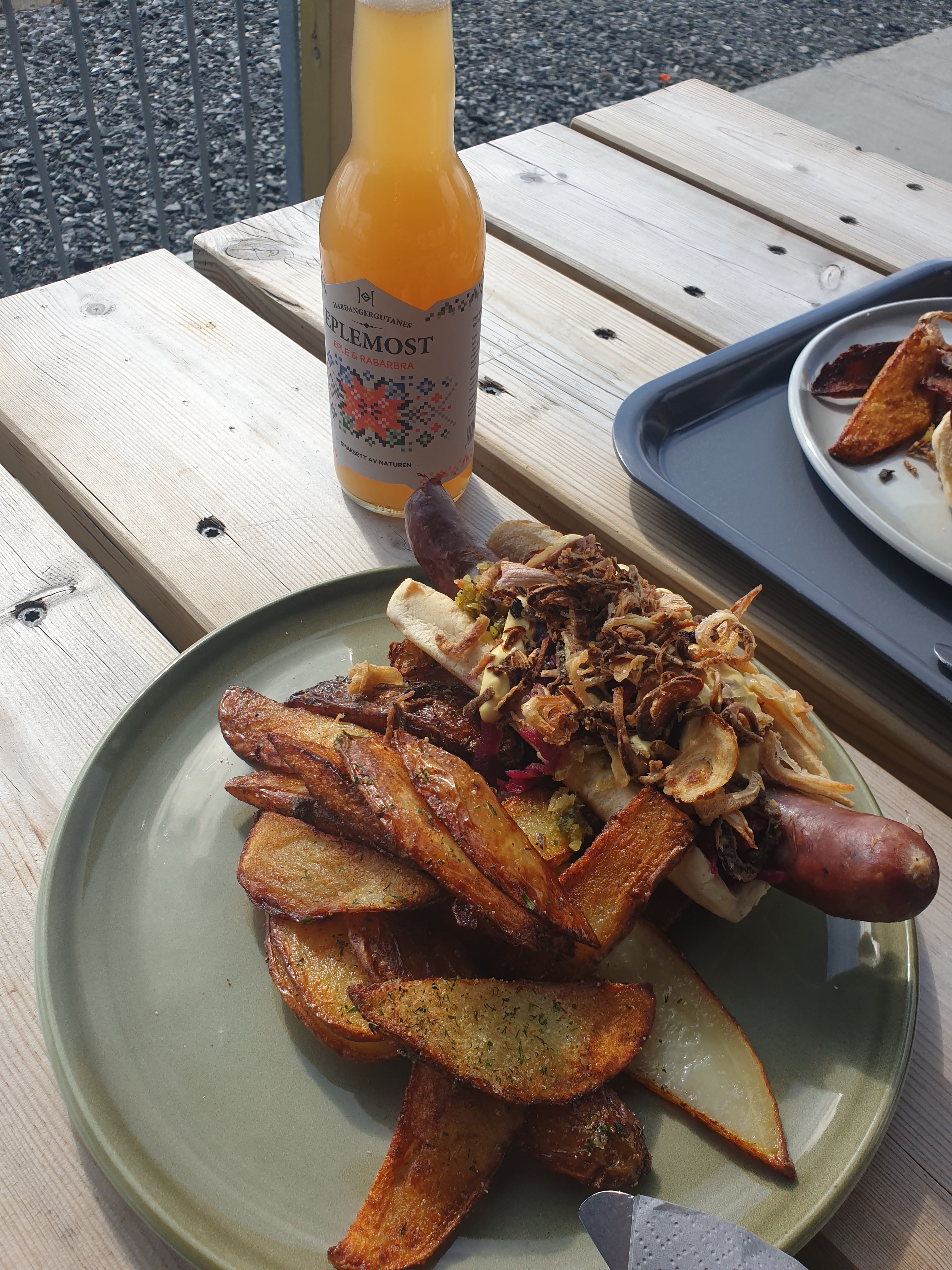Our plan was to get a relatively small lunch, but the sausage made from local sheep turned out to be quite the meal. It was really tasty and as I was going to continue driving I paired it with some local apple juice.