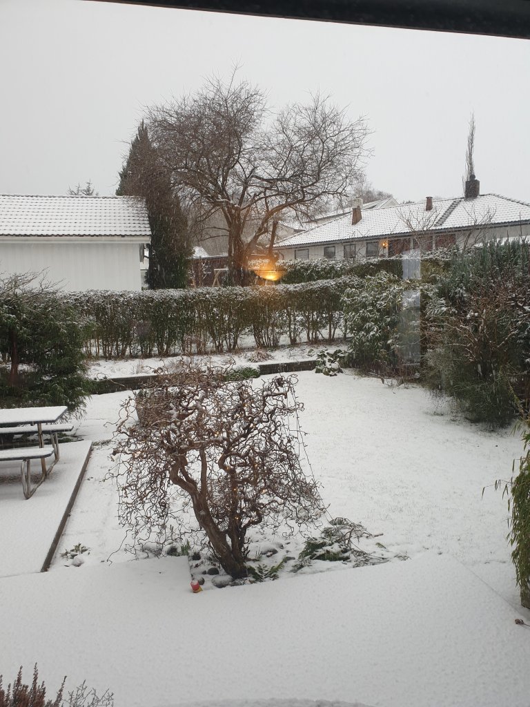 I had a lazy morning and my mother and me watched some biathlon and some cross country skiing. As we were watching it started to snow more outside, so after much relaxing and some tidying we went for a little walk to enjoy the snow. We did not go too far as it did start to rain a bit as we walked. I am not a very big fan of snow here in the town as it normally melts and freeze and mostly just make thing a bit harder. But I must admit that there is something magical about the snow when it is lying on the ground and surfaces and makes the dark afternoons and evenings a bit brighter. I just hope that it won’t be to icy tomorrow when I go to work.