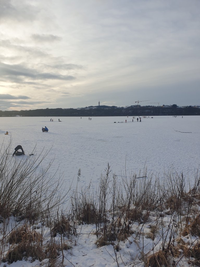 Saturday came with a good sleep in. And just after a quick breakfast we went out in the lovely winter weather. The lake close to our apartment is one of the ones that has frozen over so that they are safe to walk on. As there was a bit of snow on them, they were not too good for ice skating, but there were quite a few parents out claring little squares for their kids to skate and play ice hockey on. I did not bring skates but opted for going for a good walk on the ice. It was very nice and gave me many flashbacks to good memories from my childhood.