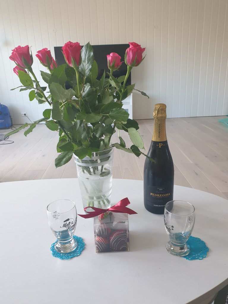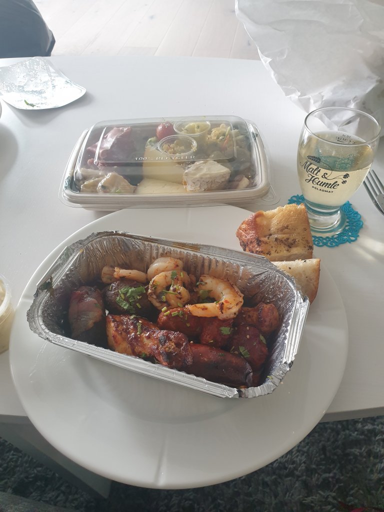 We ordered some lovely tapas and enjoyed a bottle of bubbles and the wonderful chocolate dipped strawberries. The champagne glasses were packed down in a box somewhere so some of our small beer glasses had to do. But we still enjoyed food and drink while watching Thunder Force on Netflix. If you are looking for a silly movie that is easy entertainment, but quite fun to watch, I can recommend it.