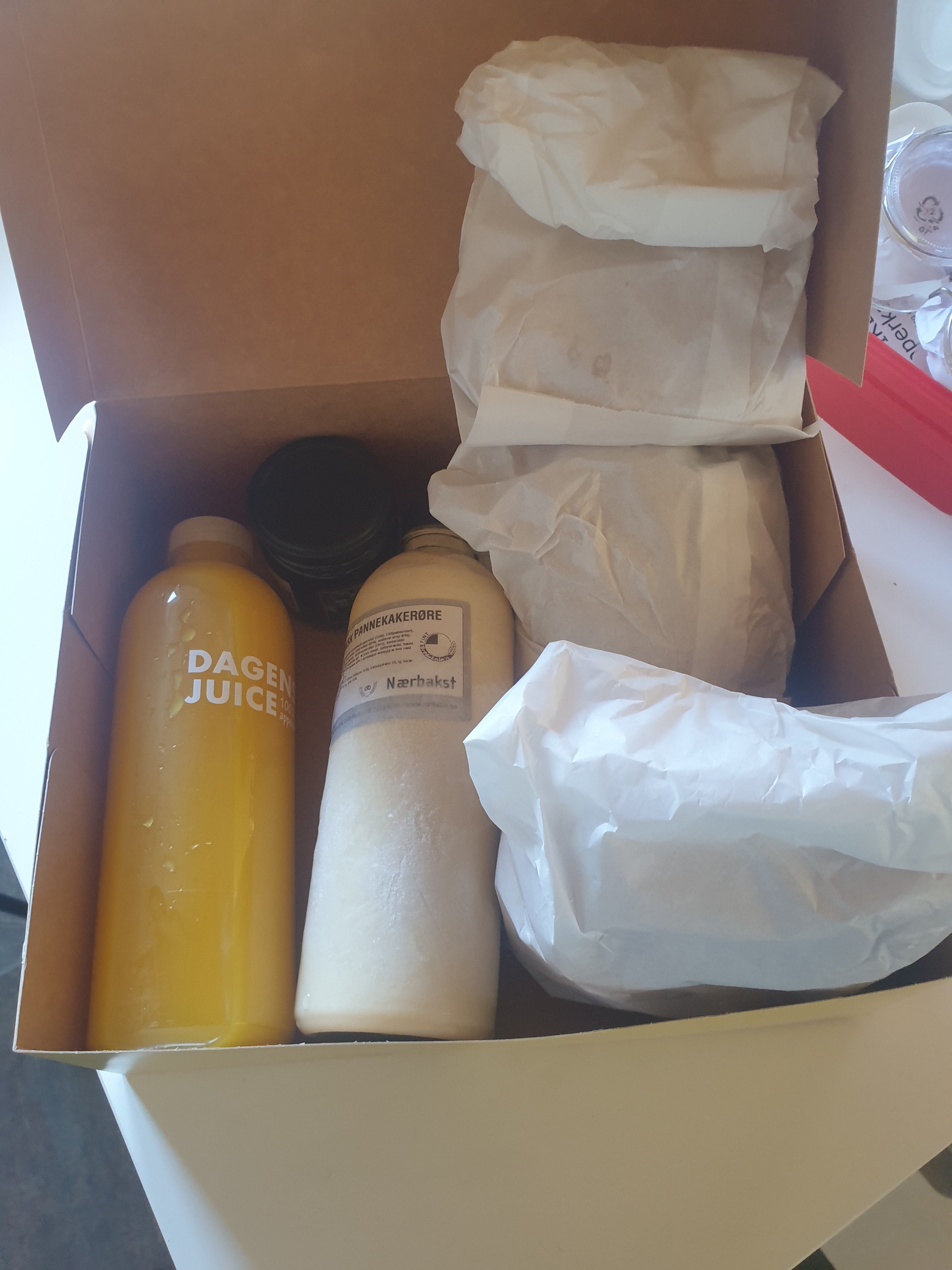 This weekend has started quite lovely. I had a quiet evening yesterday and only manage to watch half the Premiere League game before I fell asleep. So I woke up a little bit early feeling well rested this morning. Just after waking up I got a text saying that a package was delivered on my doorstep. The package was a nice box with breakfast from my other half’s job.