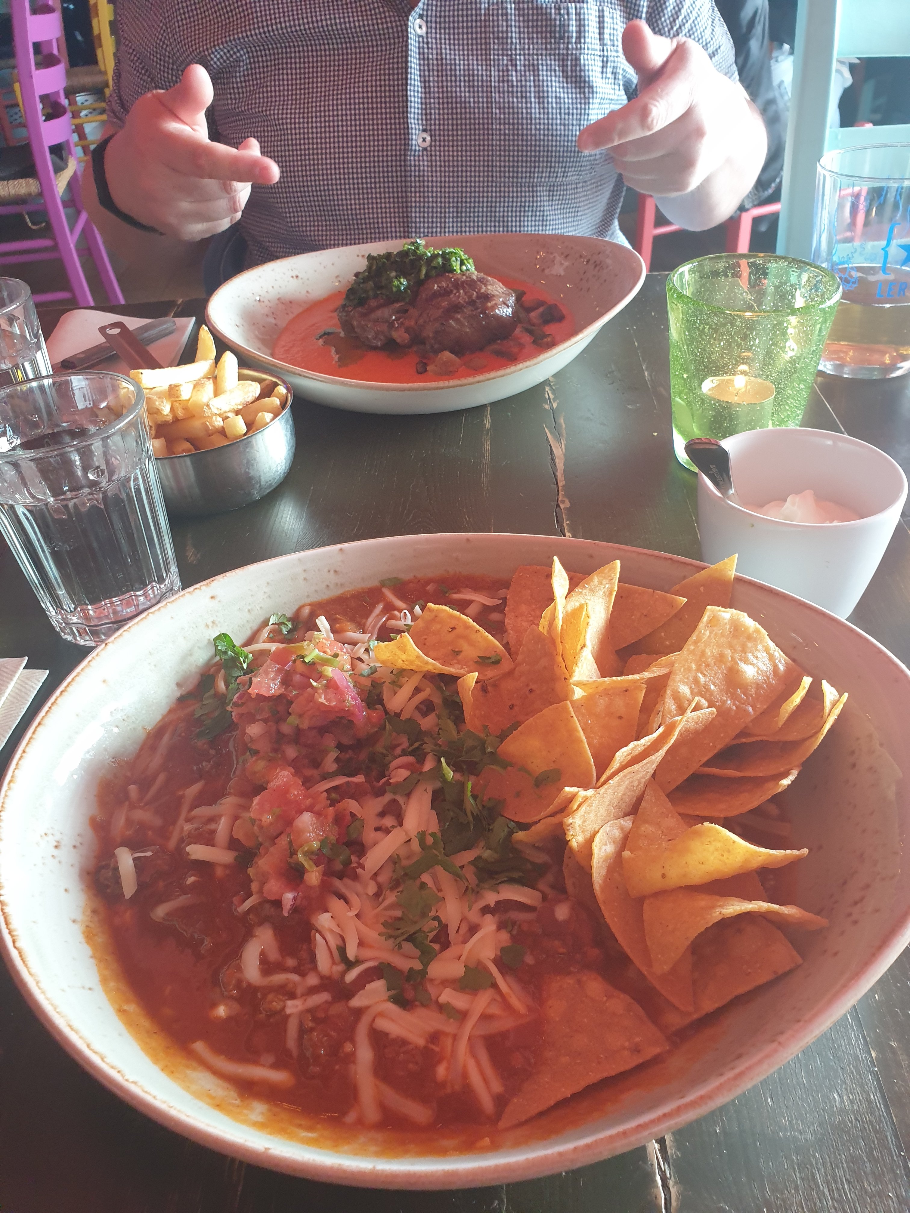 The day was lovely and as the restaurants were just allowed to serve alcohol with food after a period of being closed, we decided to take a stroll in to town to enjoy some nice food and drink. There was a lot of people out, sitting on tables a few meters apart enjoying the lovely weather an a cold drink and some food.