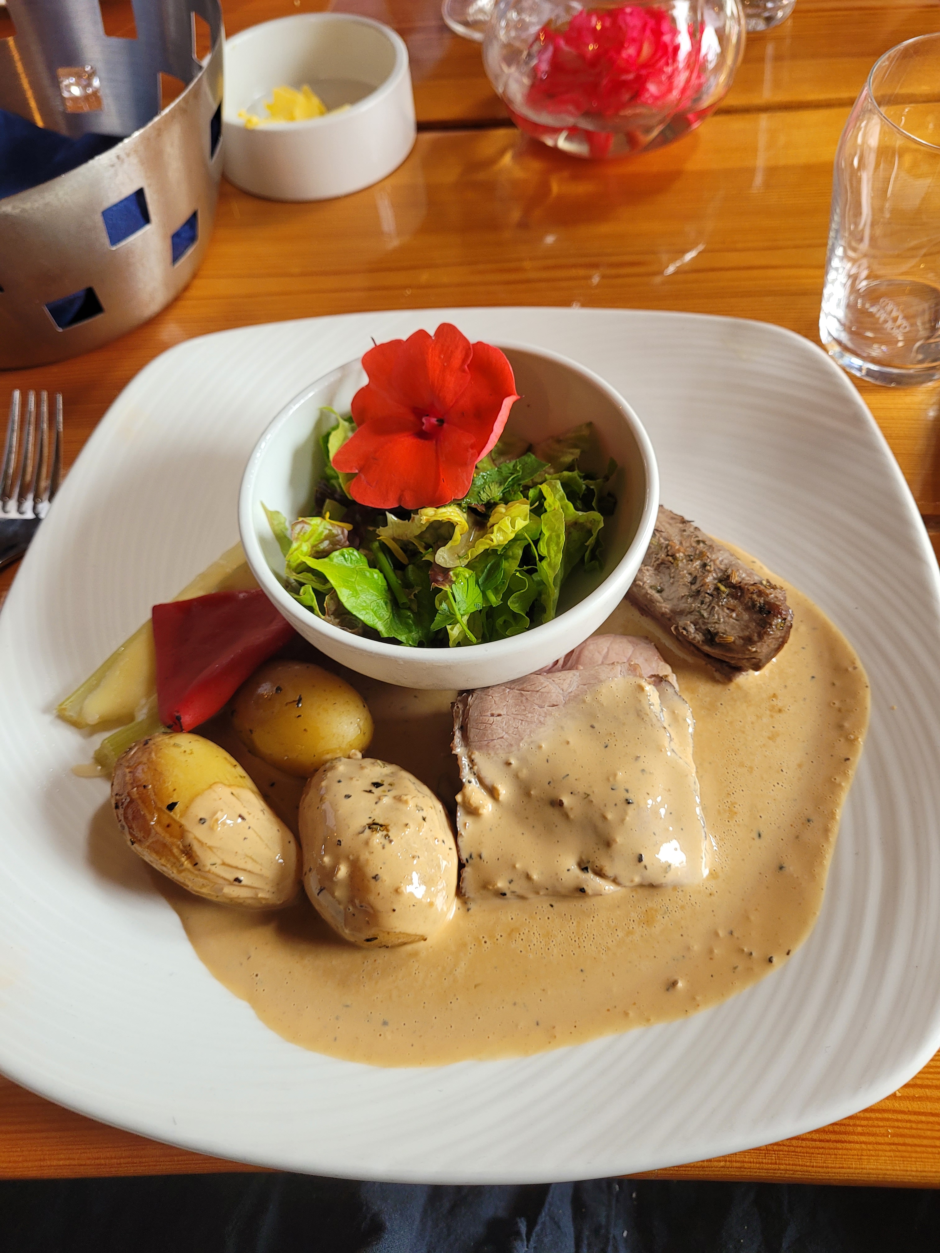 The main was local beef brisket and lamb tenderloin served braised and oven baked with potatoes and a salad. Both types of meat was extremely tender and paired with a good glass of red.