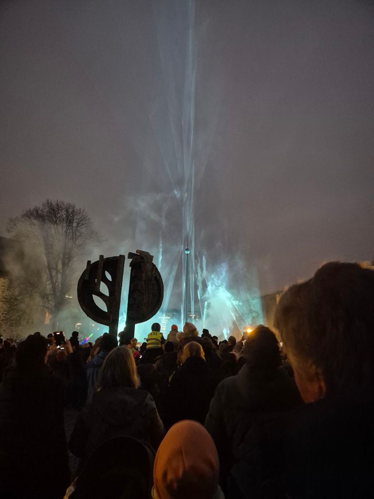 There are many different light sculptures that are to brighten up the skies till the 2nd of february. There were lights, a concert and free hot chocolate for the children, a lot of other music and dance preformances. There were also some activities for kids. And what looked like at least half the population of the town (140 000 ish in total).