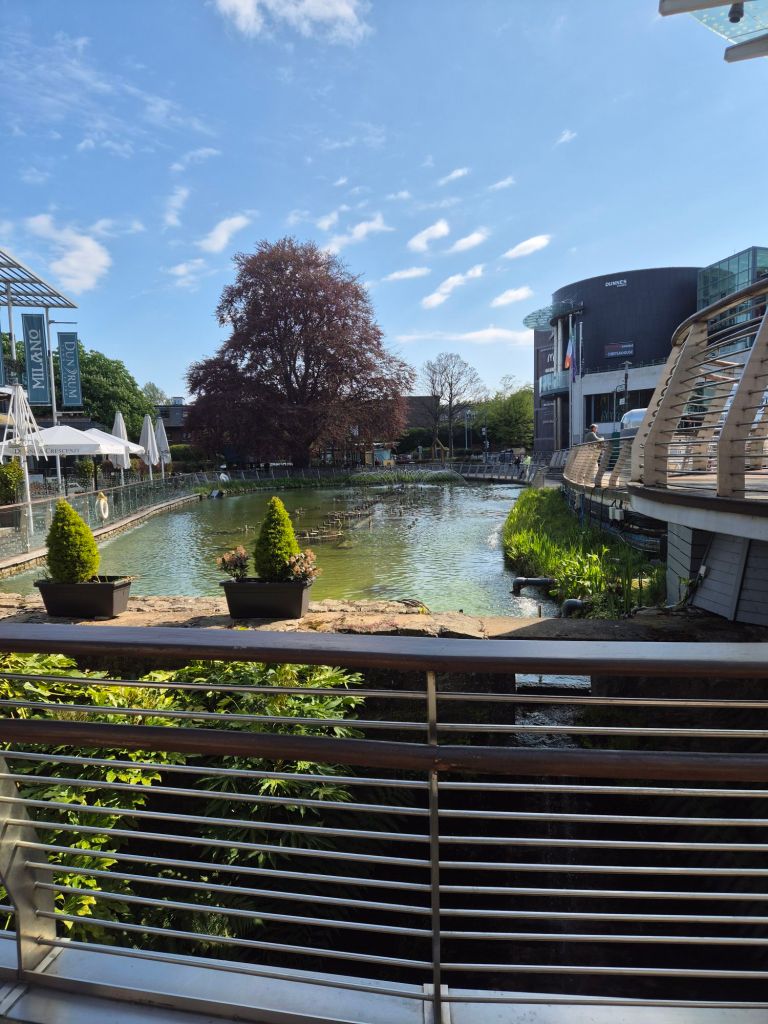 Wikipedia says: Dundrum Town Centre is a shopping centre located in Dundrum, Dublin, Ireland. It is one of Ireland’s two largest shopping centres with over 131 shops, 47 restaurants, 3 amusement facilities and a cinema. It is located just south of the centre of the suburban village of Dundrum, within the wider eponymous area. It has annual footfall in excess of 18 million.